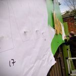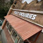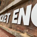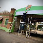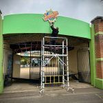 Artwork, production and installation of a 6m wide curved archway facia with CNC cut logo and lettering with Acrylic Standoff Locators.