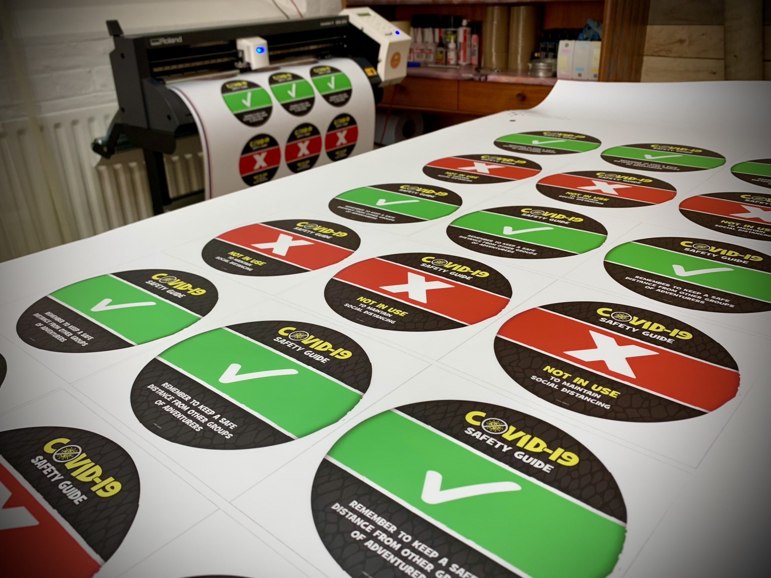 Bespoke Internal & External Stickers and floor graphics, produced with R10 anti-slip rated laminate. Square cut or cut to shape.