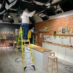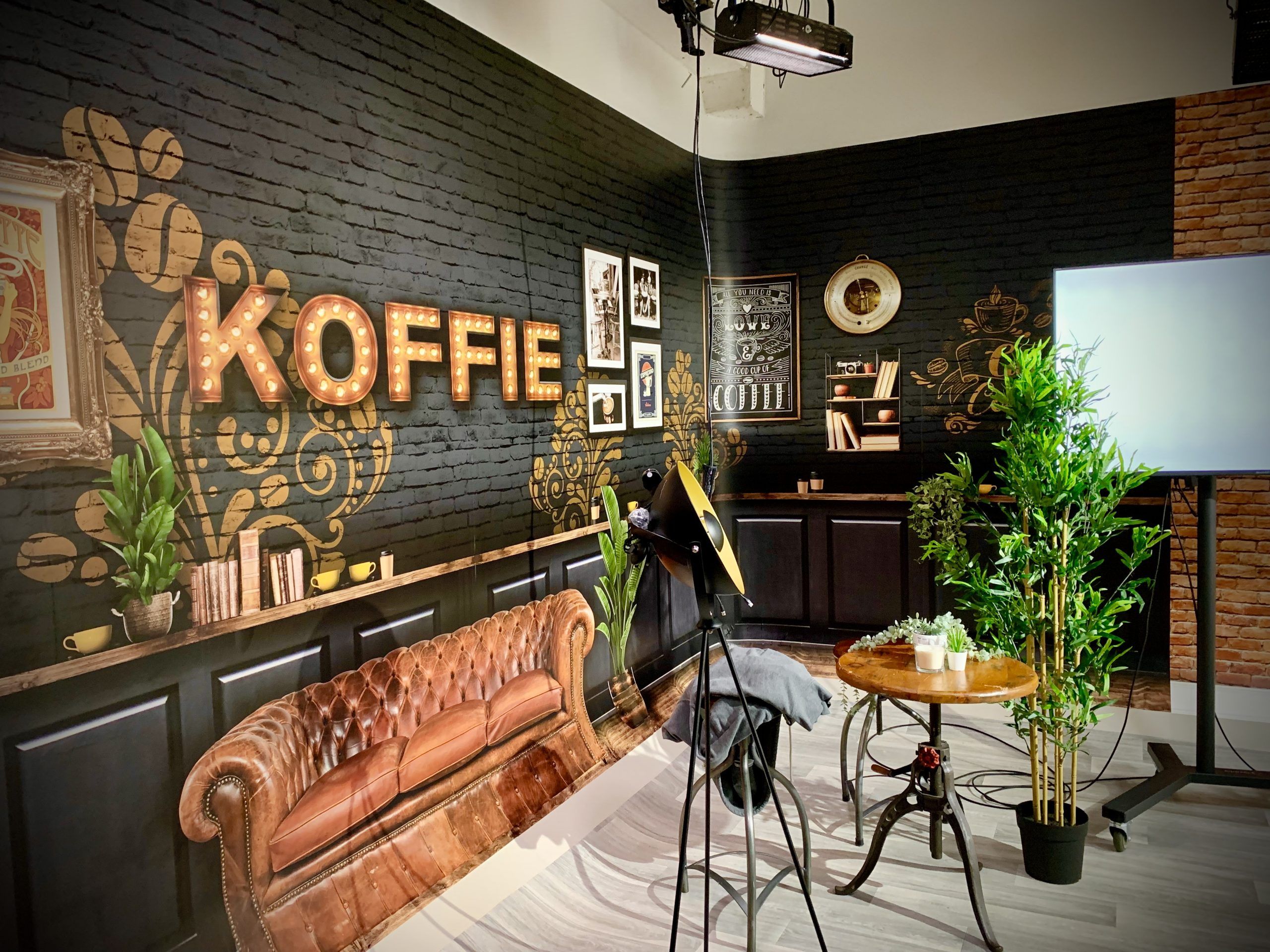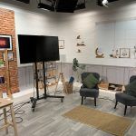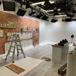 At a TV and Film Studio in West London we produced and installed 80m of digital wallpaper for a one day Live TV broadcast. Setting three home style scenes on an infinity wall backdrop with the addition of a kitchen island created from foamex.