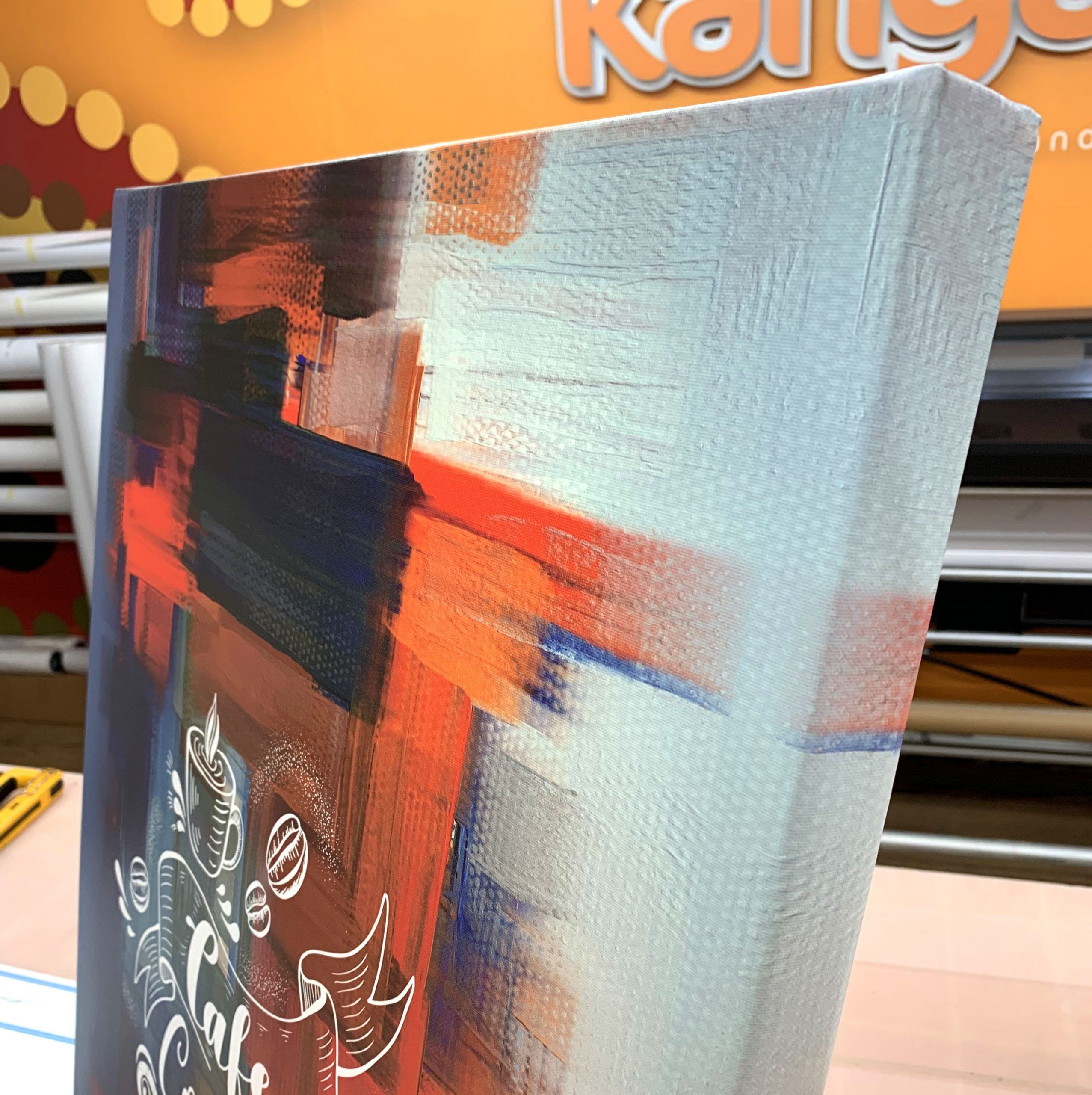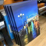 Picasso 330gsm Satin with Reiver UV Satin varnished, stretched on 44mm Gallery Stretcher Bars. All sizes and shapes available!