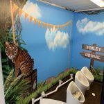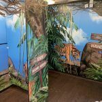 Tiger Rock Toilet Block at Chessington World of Adventures. Tasked with a design concept, artwork, production and installation of latex printed, laminated high grab laminated vinyl