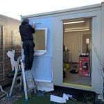 Laminated High Grab, Latex printed vinyl. The production and installation of multiple external and internal portacabin wraps.